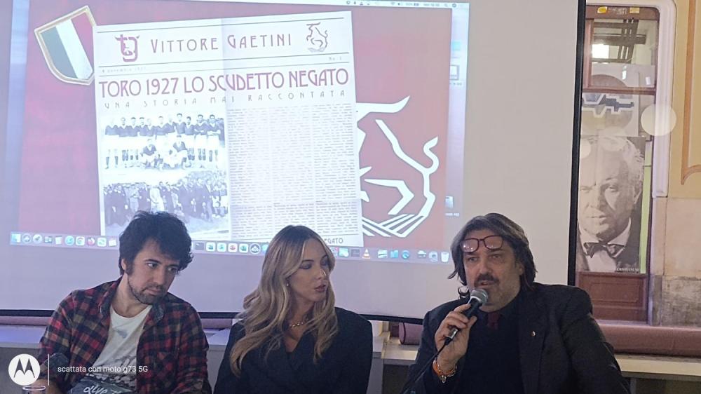 “Toro 1927: lo scudetto negato” è un docufilm ideato e realizzato da Vittore Gaetini, grande tifoso del Toro, con la regia di Flavio Sonetti, nipote di Nedo, e Torovisione, che è stato presentato ieri a Torino al Bistrot Culturale “Ramo d’Oro” in un talk condotto da Lucrezia Maritano e con ospiti Domenico Beccaria, presidente del Museo del Toro, Vittorio Molinari, nipote di Vittorio Staccione ex calciatore del Torino, e Marco Morelli di Popolo, il nonno Vittorio con altri nel 1906 fondò il Torino. Il docufilm sarà disponibile gratuitamente per tutti su Youtube dal 4 novembre sul canale di Torovisione. “Il docufilm è autoprodotto ed è un atto di amore verso il Toro – ha raccontato Gaetini -. Il clima generale di oggi intorno al Torino fa male e mi ha portato già dallo scorso anno, è un anno e mezzo che lavoriamo a questo docufilm, a voler far capire che cos'è il Toro, chi siamo noi tifosi granata e da dove arriviamo. Lo scudetto revocato nel 1927 è uno dei fatti più terribili della storia del Torino. Secondo me, è il secondo fatto terribile dopo il campionato interrotto del 1915 a causa della Prima Guerra Mondiale e per questo noi granata perdiamo un eventuale scudetto, o meglio la possibilità di giocarcelo. Nel 1927 ci fu il primo grande Torino, che nella gestione Marone Cinzano vincerà due scudetti e arriverà secondo, anche se in realtà quando arrivò secondo il conte Marone Cinzano non c'era più alla guida del Toro. Marone Cinzano fu un presidente che portò la managerialità nel calcio, che fece edificare il Filadelfia, un presidente illuminato e per questo il Torino diventò grande. Molto spesso quando parliamo di oggi non sappiamo niente di ieri e questo ci ha portato a dire cominciamo a ragionare su questo primo scudetto che ci è stato tolto”.
