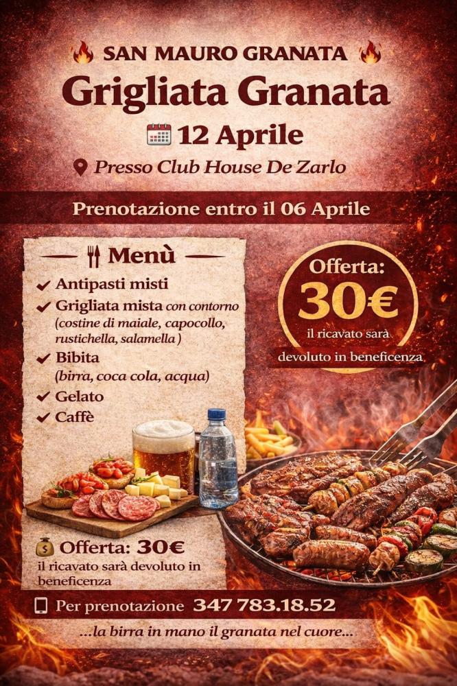 E’ arrivata la primavera e quindi è tempo di grigliate e allora il Toro Club San Mauro Granata ha deciso di organizzare la “Grigliata Granata”. L’appuntamento è per domenica 12 aprile, il Torino giocherà il giorno prima con l’Hellas Verona quindi non ci sono “conflitti d’interesse”, presso il Club House De Zardo.